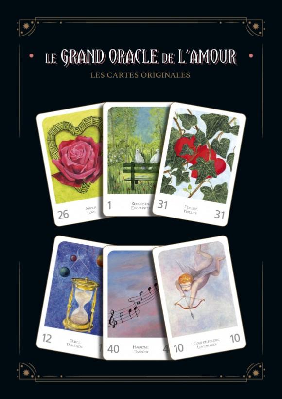 Le Grand Oracle de l’Amour est composé de 45 cartes bilingues anglais-français. Il est accompagné d’une notice et d’une pochette satinée.
