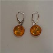 Boucle d'oreilles de type pendant avec fermoir dormeuse et donuts en ambre véritable de la Baltique couleur cognac.